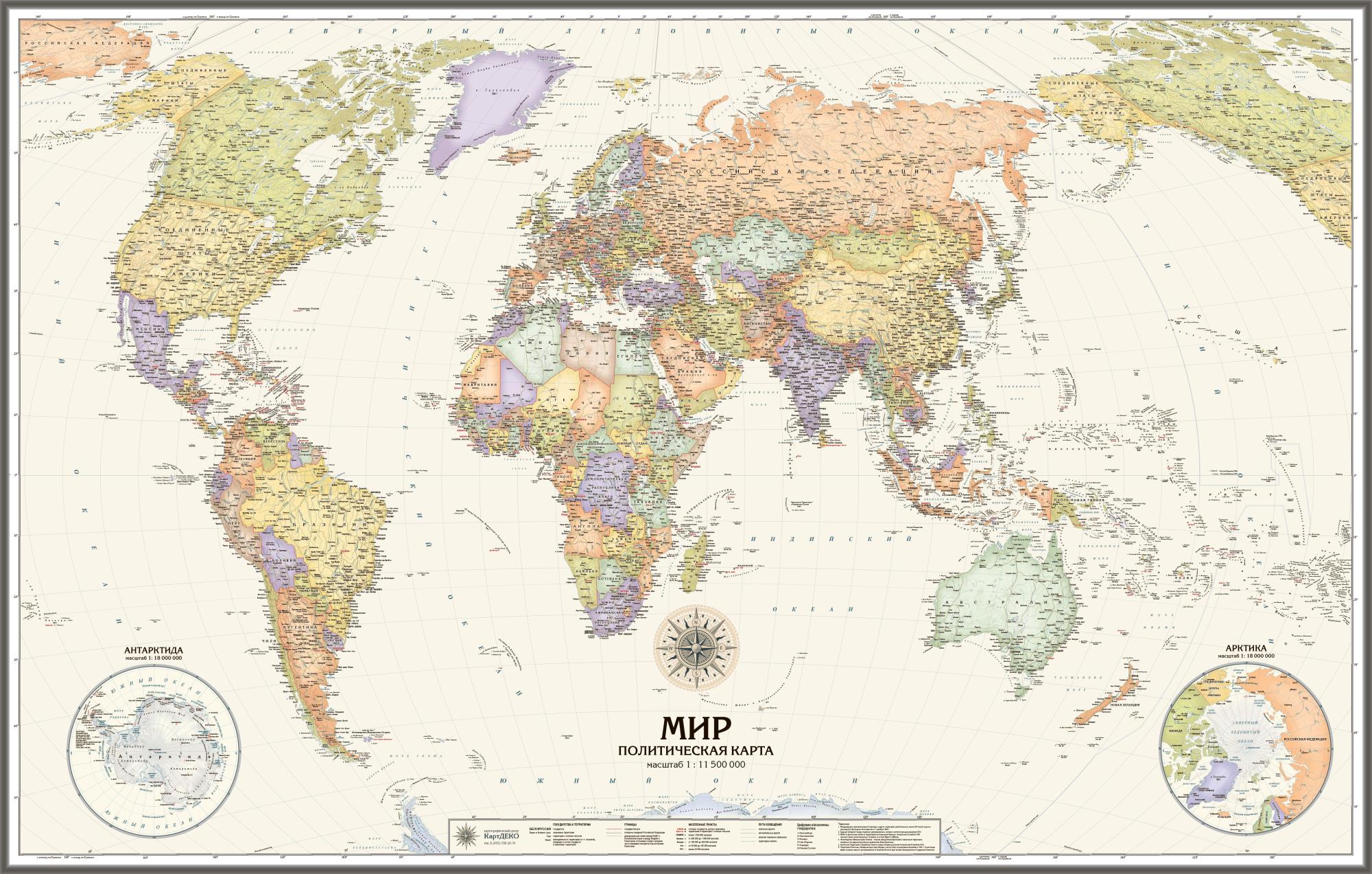 Политическая карта мира в английском стиле отлично смотрится как в офисе, так и дома и вписывается в любой интерьер.