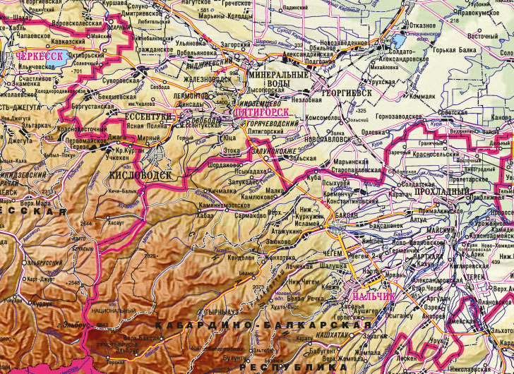 Северо-Кавказский федеральный округ. Общегеографическая карта (reg003)