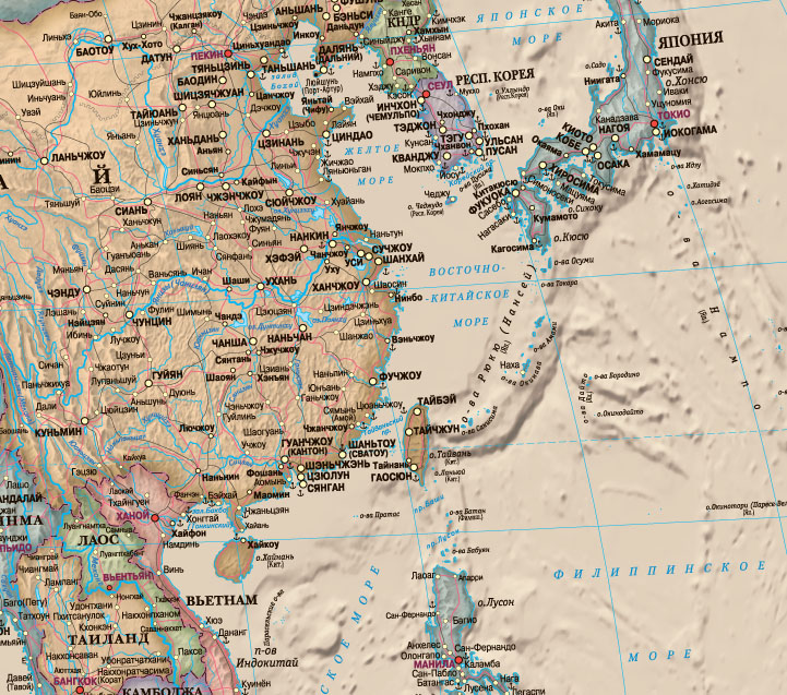 На карте показано территориально-политическое устройство мира, более 6 000 географических объектов, в том числе 3 500 населенных пунктов.