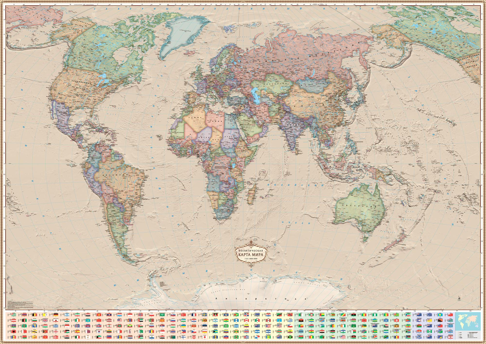 На карте показано территориально-политическое устройство мира, более 6 000 географических объектов, в том числе 3 500 населенных пунктов.