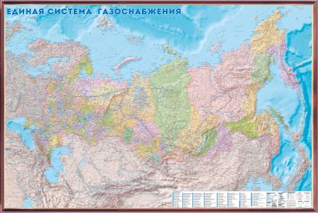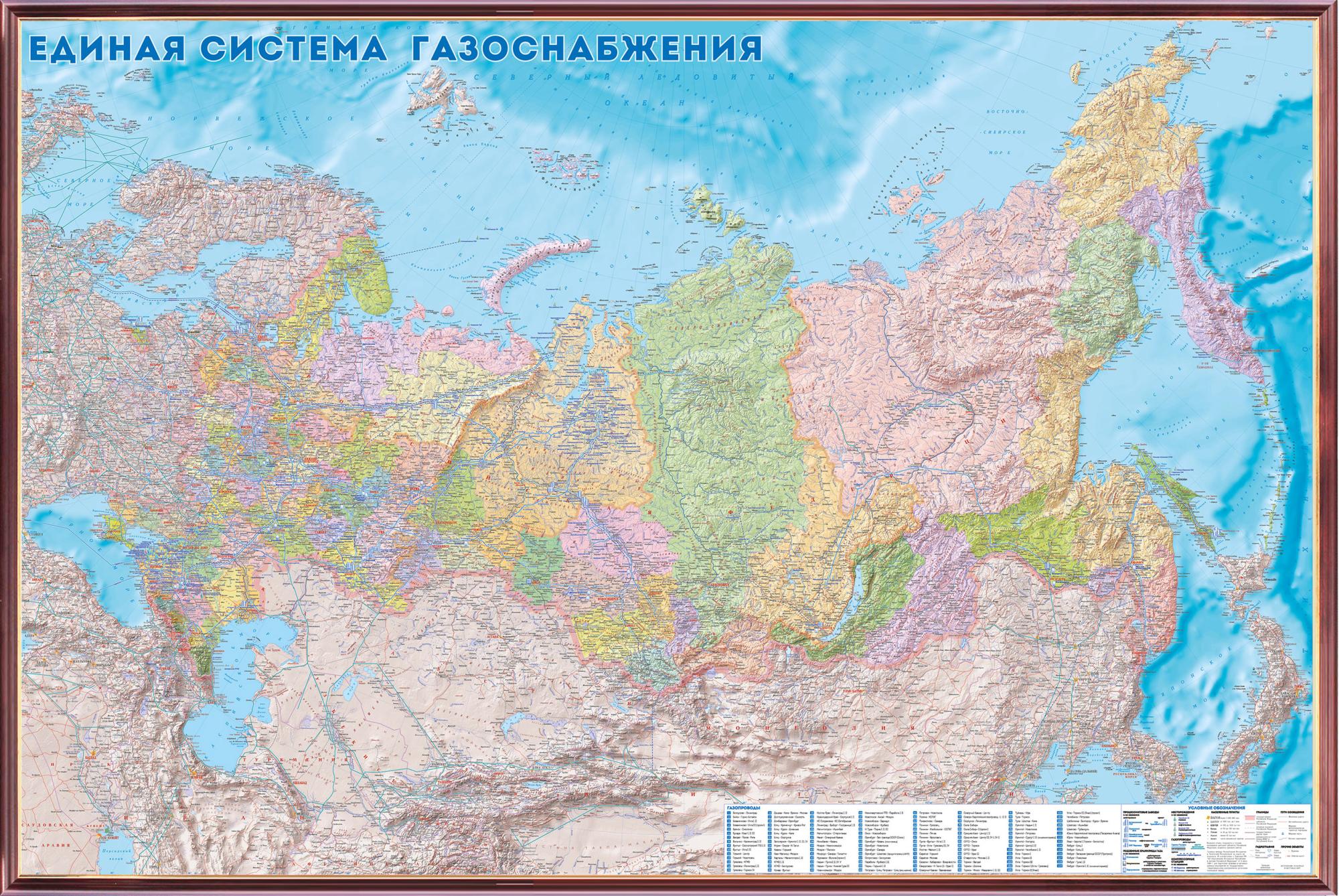 Рельефная карта "Единая система газоснабжения России"Политико-административная 3D рельеф (2,8 х 1,9)