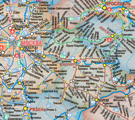 Отдельными врезками на карте показаны схемы путей сообщения Москвы и Московской области, Санкт-Петербурга и Ленинградской области.