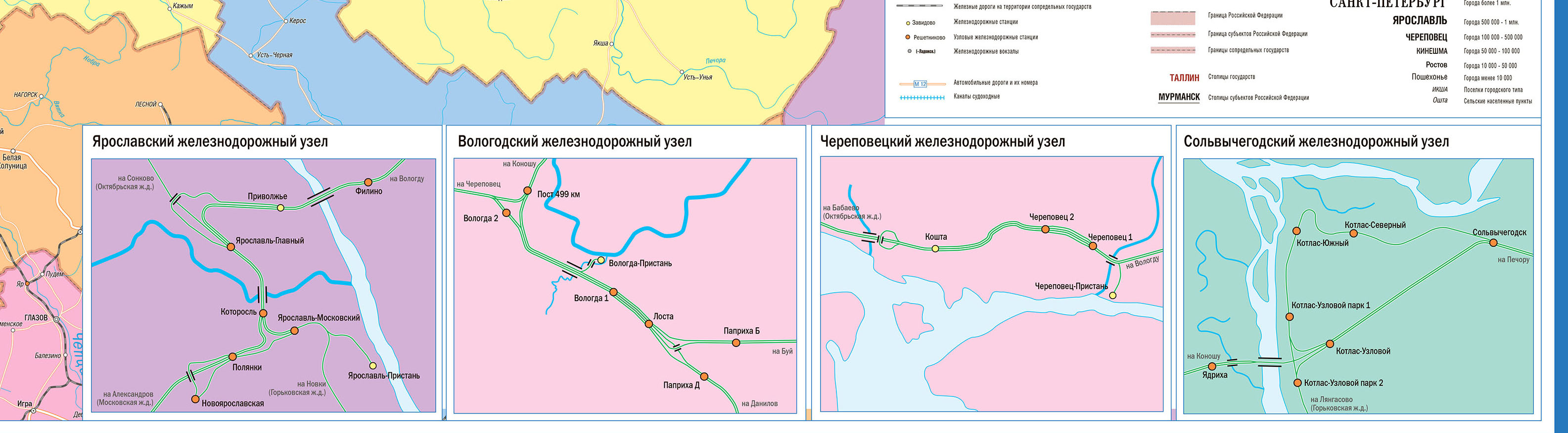 Отдельными врезками даны железнодорожные узлы Ярославский, Вологодский, Череповецкий, Сольвычегодский.